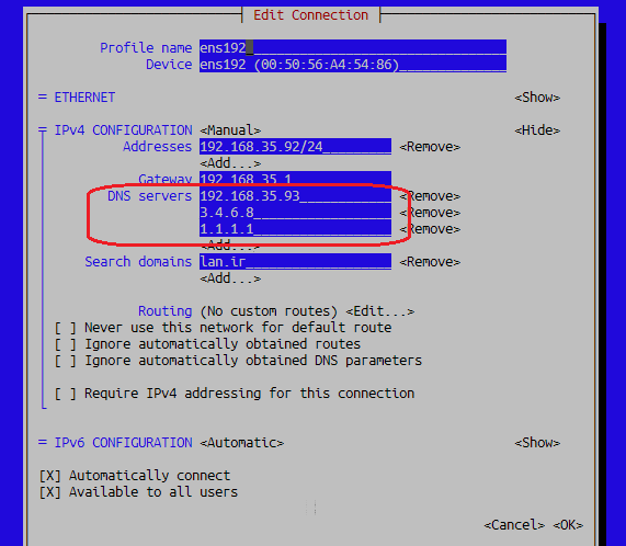 هر تغییراتی که بصورت دستی در فایل etc/resolv.conf اعمال کنید در لینوکس پس از ریبوت سیستم عامل و یا restart سرویس شبکه از بین خواهد رفت.