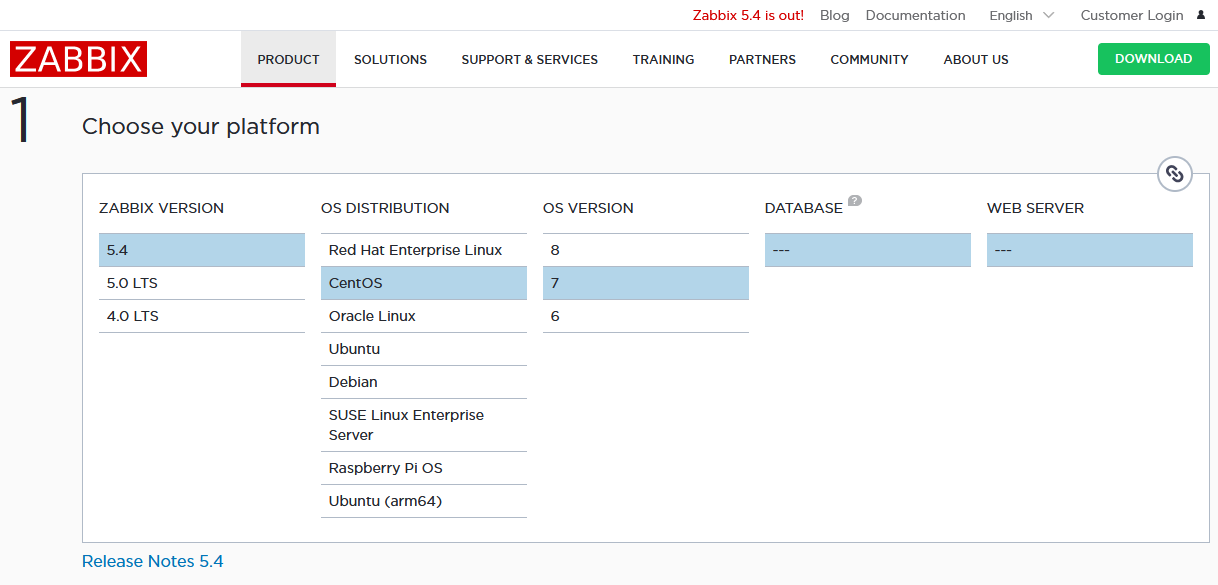 متاسفانه زبیکس در نسخه جدید خود یعنی zabbix-5.4 از سیستم عامل centos7 پشتیبانی نمی کند و دیگر خبری از لینک دانلود این نسخه در بخش centos7 نیست.