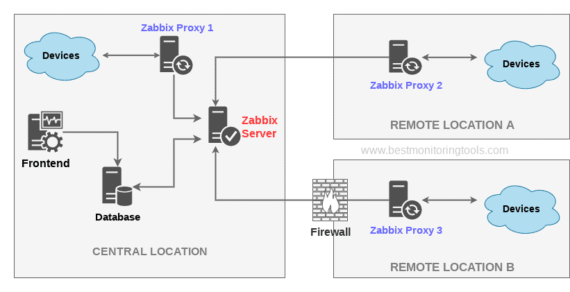در واقع zabbix proxy واسط بین hostهای داخل شبکه و zabbix server می باشد. هاست ها بجای اینکه اطلاعات جمع آوری شده خودشان را به زبیکس سرور بفرستند آنها را به zabbix proxy می فرستند و zabbix proxy وظیفه پردازش اطلاعات را بر عهده می گیرید و بعد از انجام این عملیات دیتای بدرد بخور را به سمت سرور می فرستد. با این کار بجای باز کردن پورت به اندازه hostهایی که می خواهند مانیتور شوند با zabbix server فقط یک پورت آن هم برای zabbix proxy باز می کنیم و ترافیک شبکه هم به طرز قابل توجه ای کم می شود.