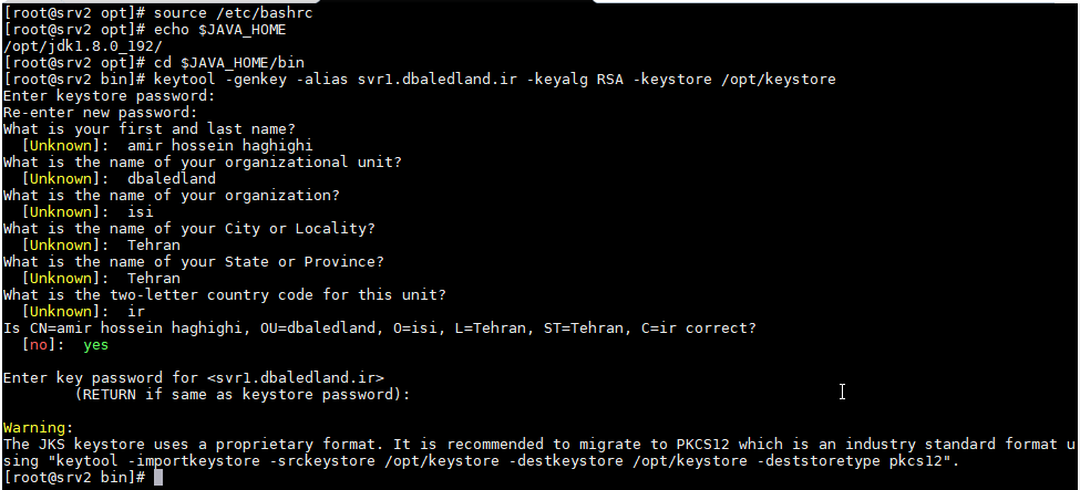 keytool -genkey -alias svr1.linuxkade.ir/ -keyalg RSA -keystore /opt/keystore
