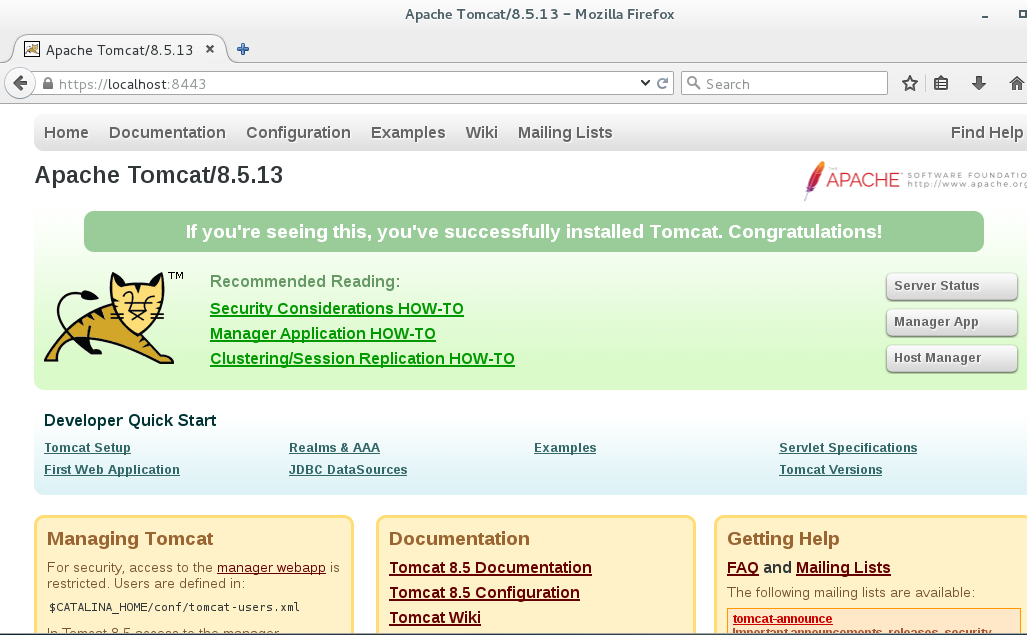 حال اگر تامکت را اجرا نمایید هم بر روی پورت 8080 که اتصال عادی و غیر https است و هم بر روی پورت 8443 که پورت اتصال https می باشد بالا می آید.